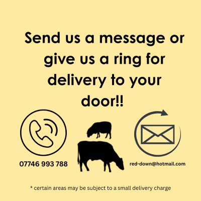 We offer free delivery of our full range in the Launceston area. If you’d like some of our homegrown, grass-fed beef delivered direct to your door fill, give us a call on 07746 993788, drop us an email or fill in our contact form.